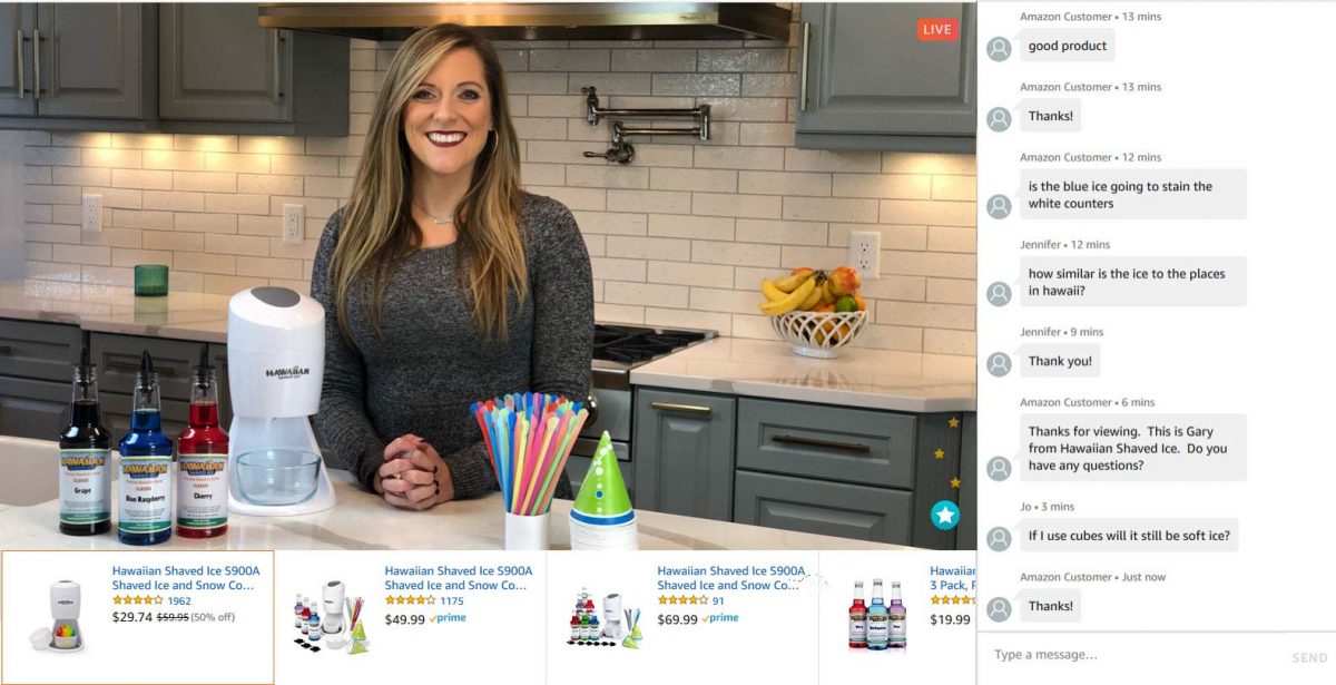 Amazon live ra mắt vào đầu năm 2019, cho phép những người bán hàng trên Amazon có thể thoải mái nói về thương hiệu và sản phẩm của họ, tương tác sản phẩm trực tiếp với tất cả người mua hàng trong thời gian thực tế.